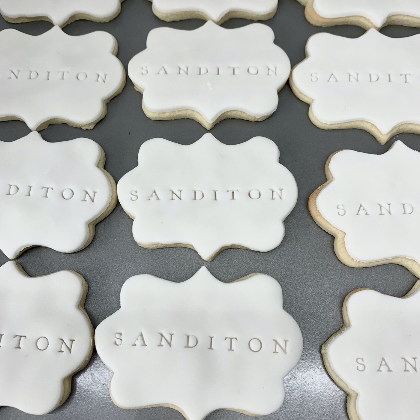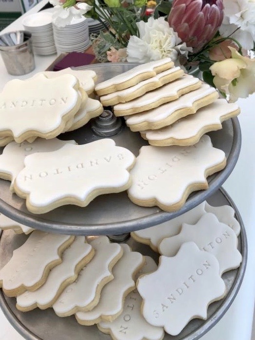 We were asked by BBC Studios to create a branded biscuit for ‘Afternoon Tea’ at the event which promoted Sanditon and felt relevant to the TV programme and novel. We wanted to keep the design simple and classy, and opted for a plaque-shaped biscuits which felt in keeping with the period of the drama. The Sanditon logo was embossed into each biscuit on white icing, and the biscuits were presented on tiered silver biscuit stands at the event.